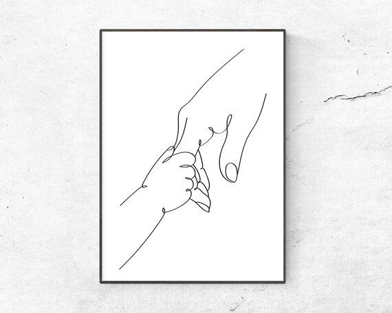 Mutter Und Baby Halten Hande Druck Single Line Zeichnung Etsy
